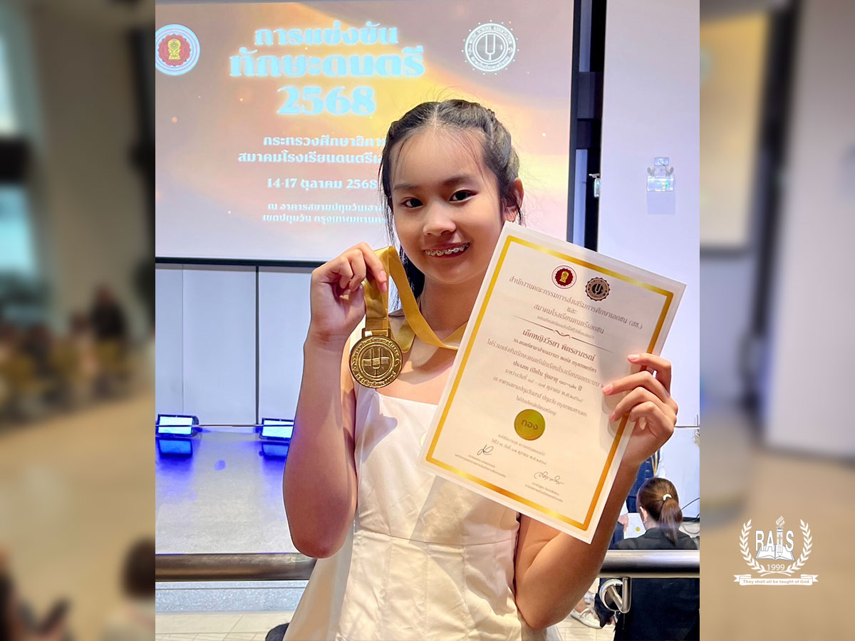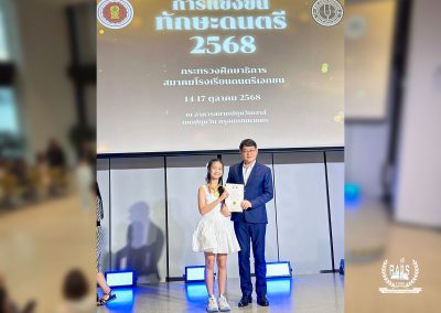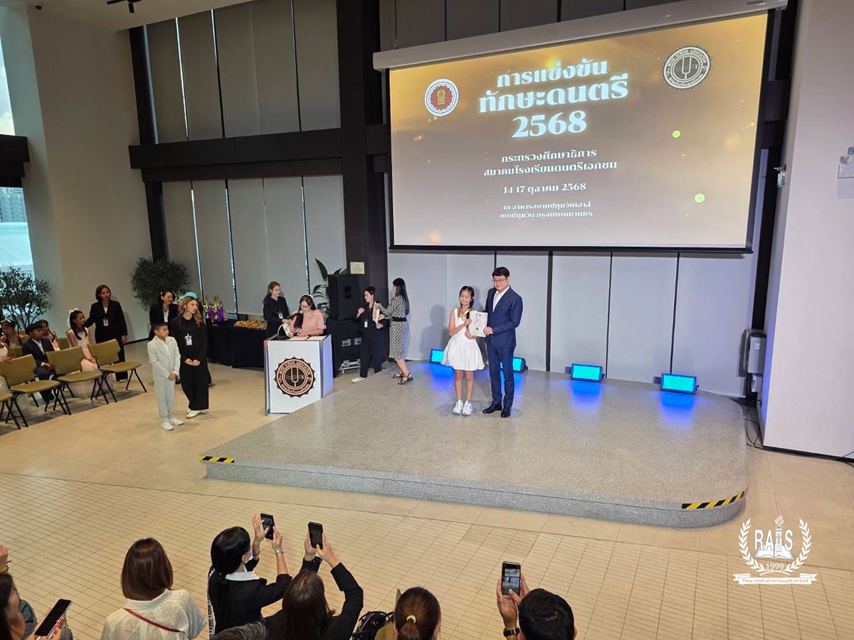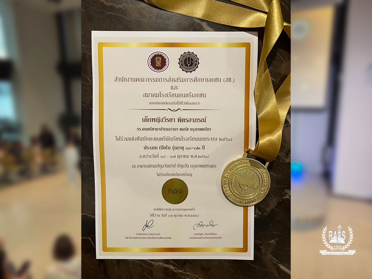 Honoring the outstanding achievement of MAYA VEERAYA PITAPORN (Grade 6) for her excellent performance at the Music Professional Skills Competition 2025 organized by the Private Music School Association of Thailand, held on October 15, 2025, at Siam Patumwan House (Yamaha Music Hall).
