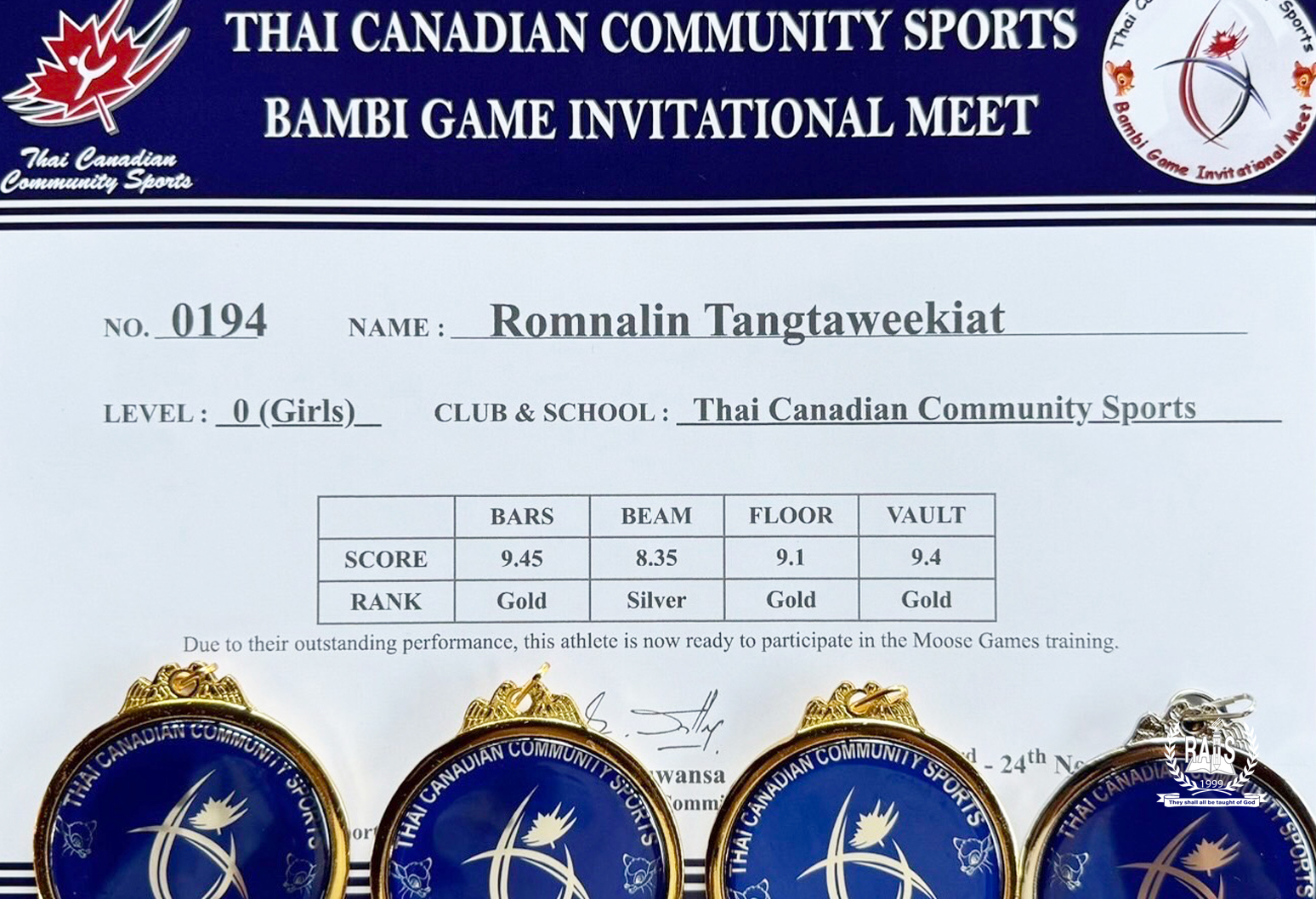 We are thrilled to announce the achievement of FAYE ROMNALIN TANGTAWEEKIAT (K 2) in “Bambi Games Invitational Meet 2024”, which was held at the Thai Canadian Community Sports on 23 November, 2024.