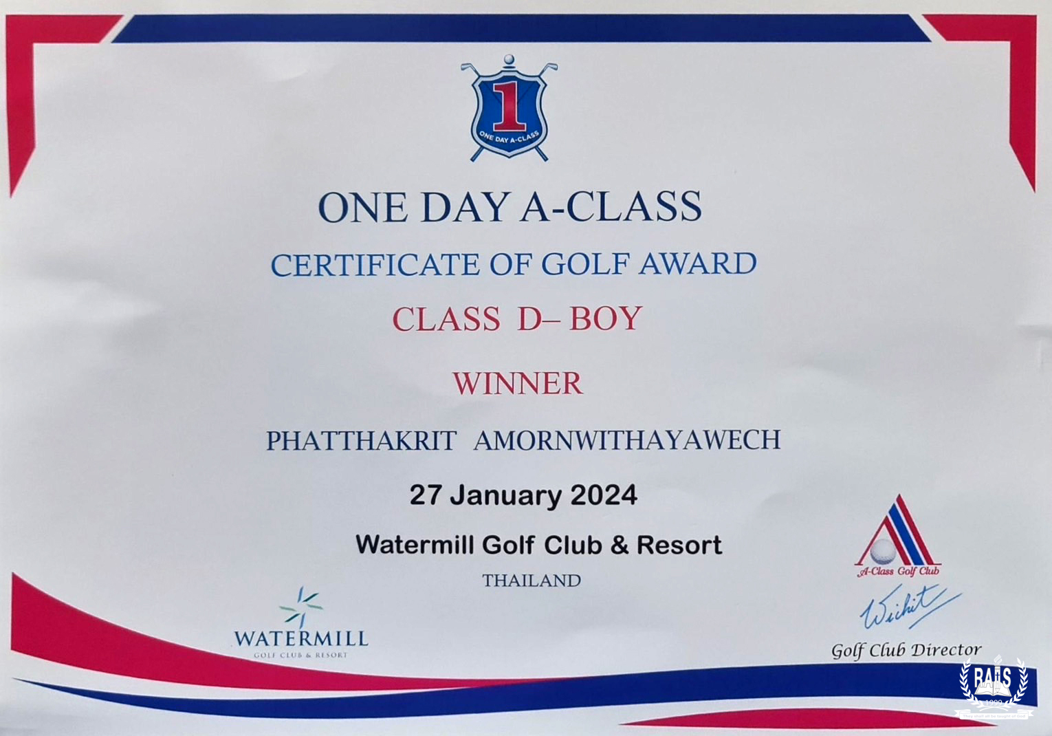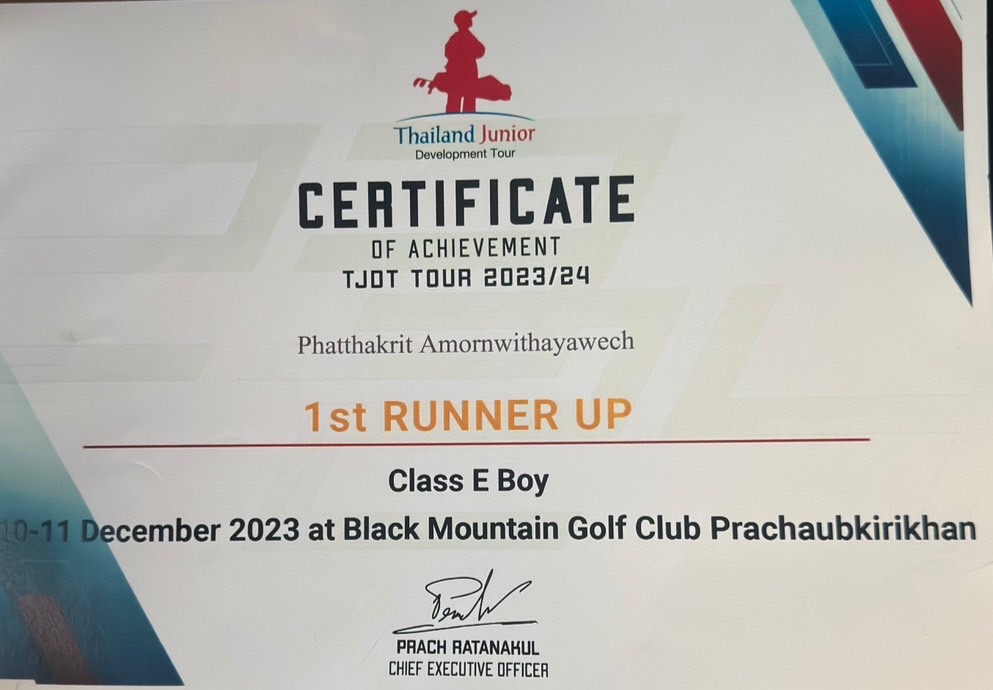 Third place in “Thailand Step-Up Kids Golf Tournament 2023” at Uniland Golf & Country Club, on October 8, 2023.